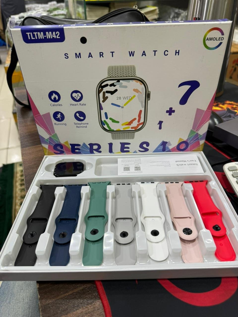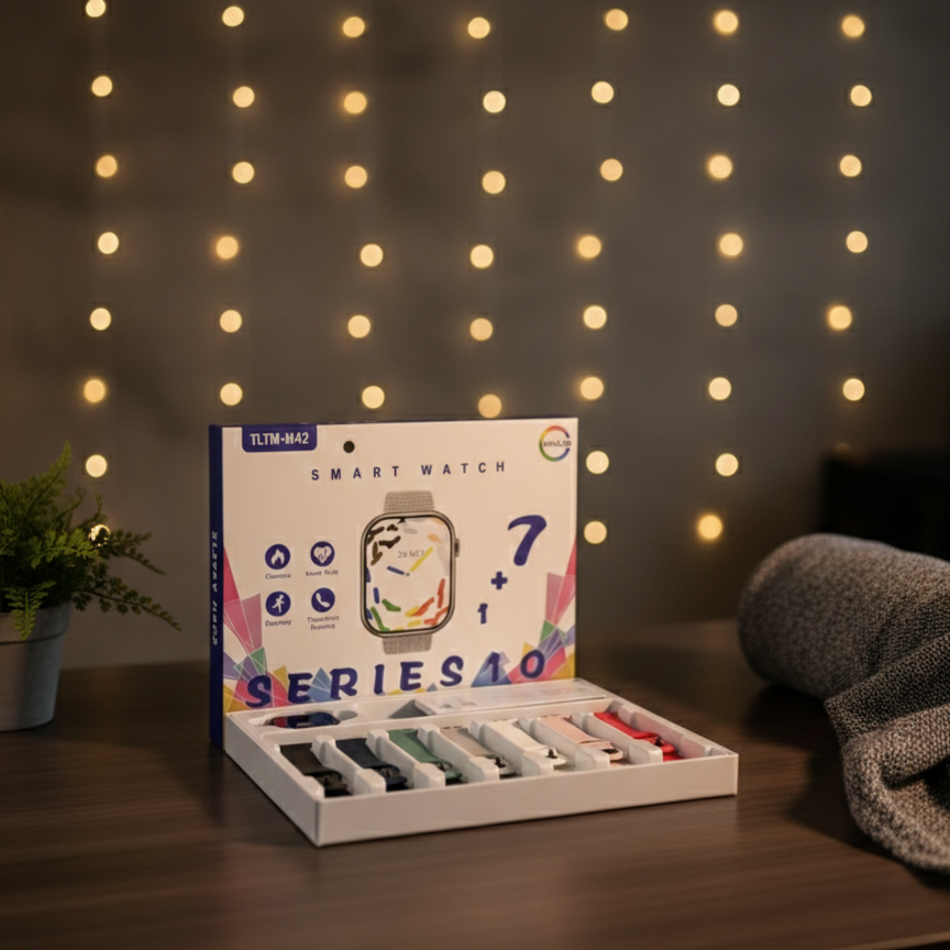 Series 10 1+7 Smart Watch TLTM-M42 Is Designed With AMOLED Display And Modern Square Dial Design. It Supports Running Tracking, Calories Monitoring, Heart Rate Monitoring, And Telephone Remind Function. Stylish And Functional Design Makes It Suitable For Daily Use And Fitness Activities.